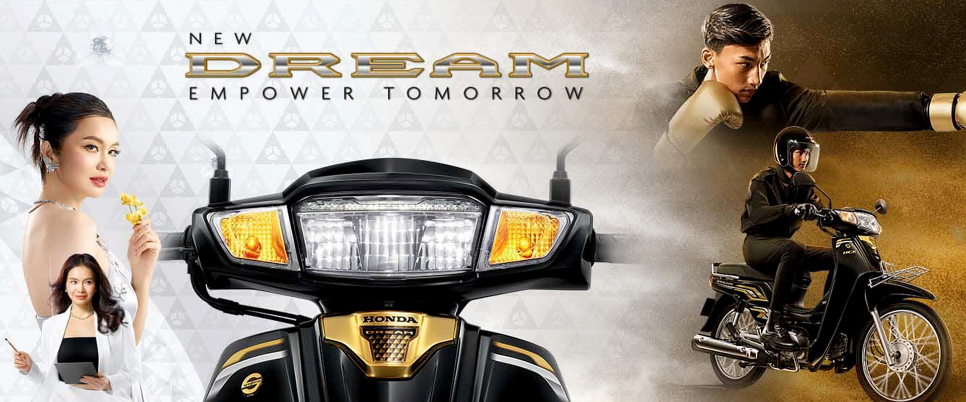 Được mệnh danh là "ông hoàng xe số", Dream 125 Thái Đời Mới 2025 sở hữu ngoại hình cuốn hút với màu đen bóng sang trọng kết hợp team 3D màu vàng nổi bật. Hiệu ứng 3D trải dài dọc thân xe tạo nên sự độc đáo, đậm chất thể thao và hiện đại nhưng không kém phần quyền lực.