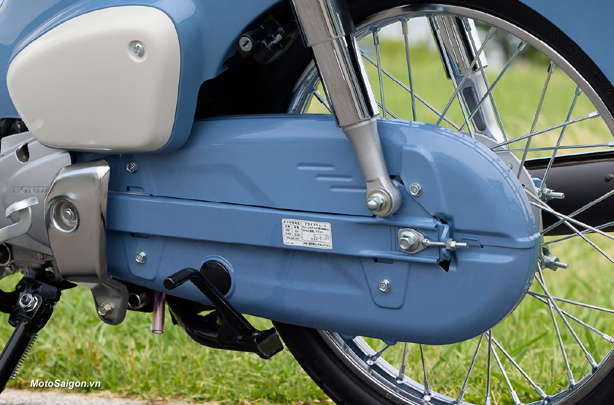 Ốp bảo vệ dây xích và gắp sau có màu xanh Bonnie Blue, cùng màu với thân xe.